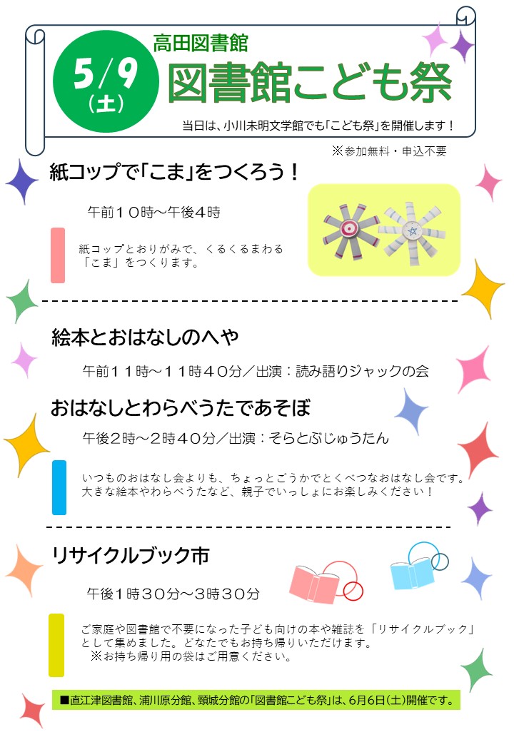 大きなえほんや手あそびうたなど、おやこいっしょにお楽しみください!